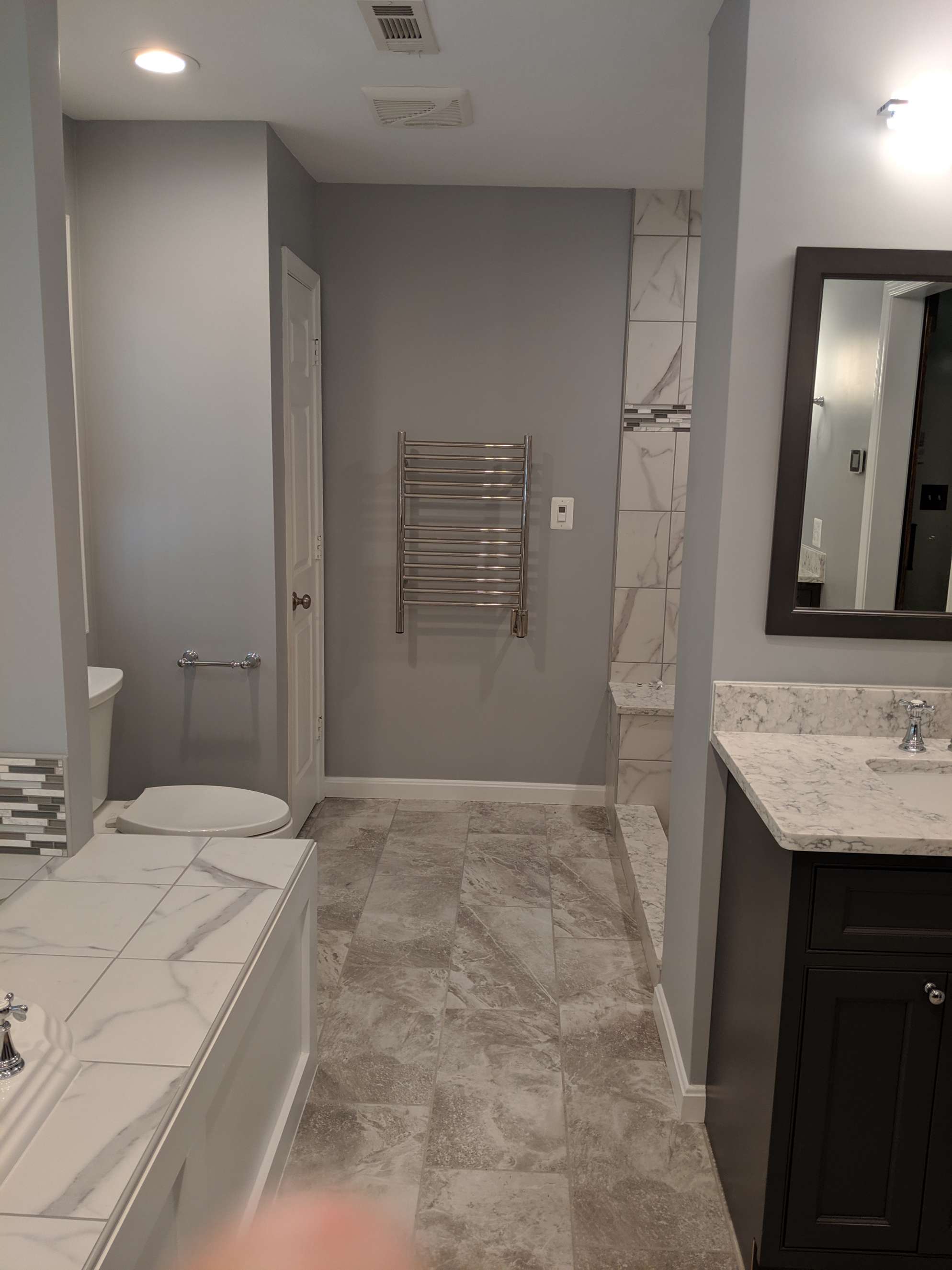Stunningly beautiful master bath featuring heated floors, soaking tub and luxurious shower.