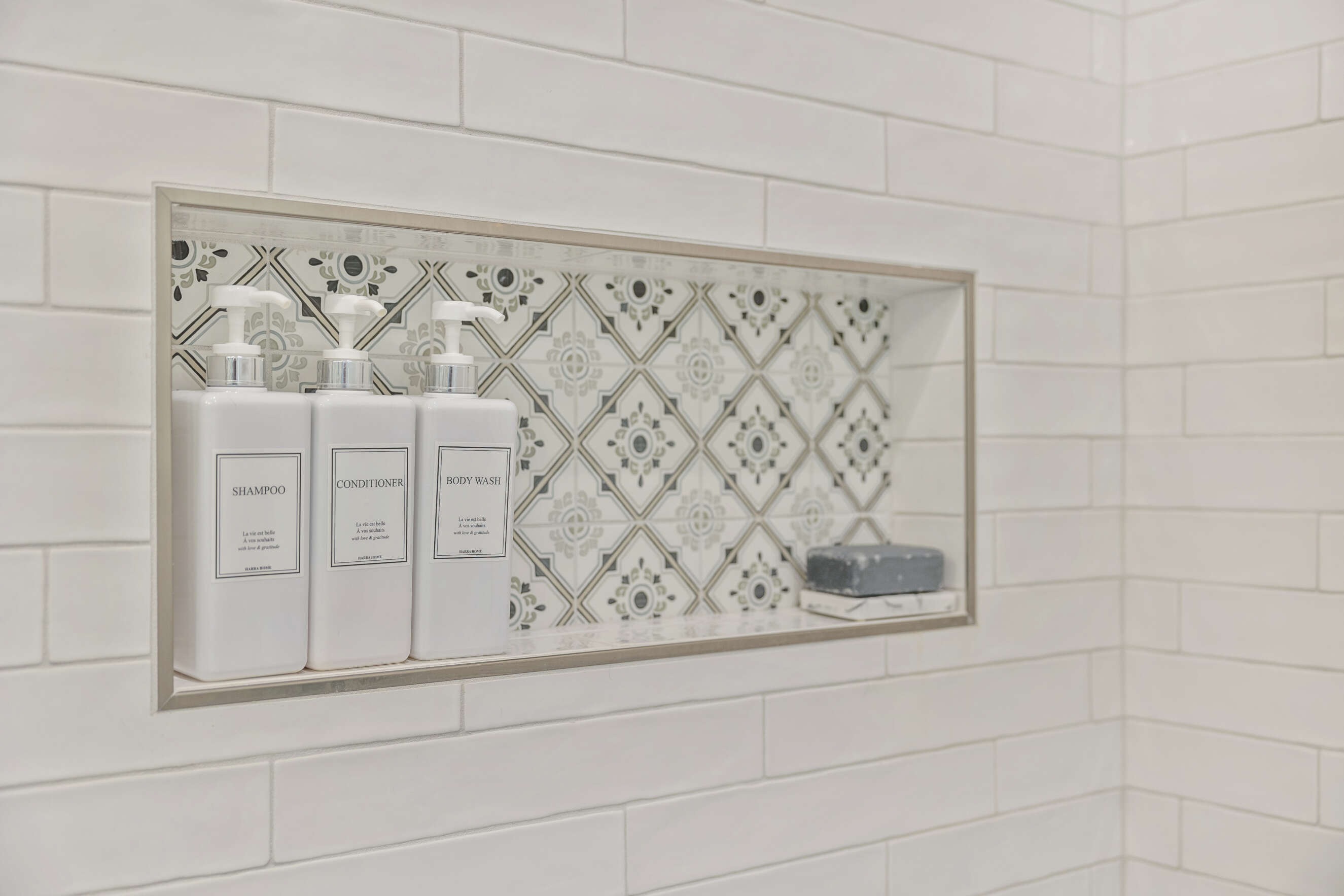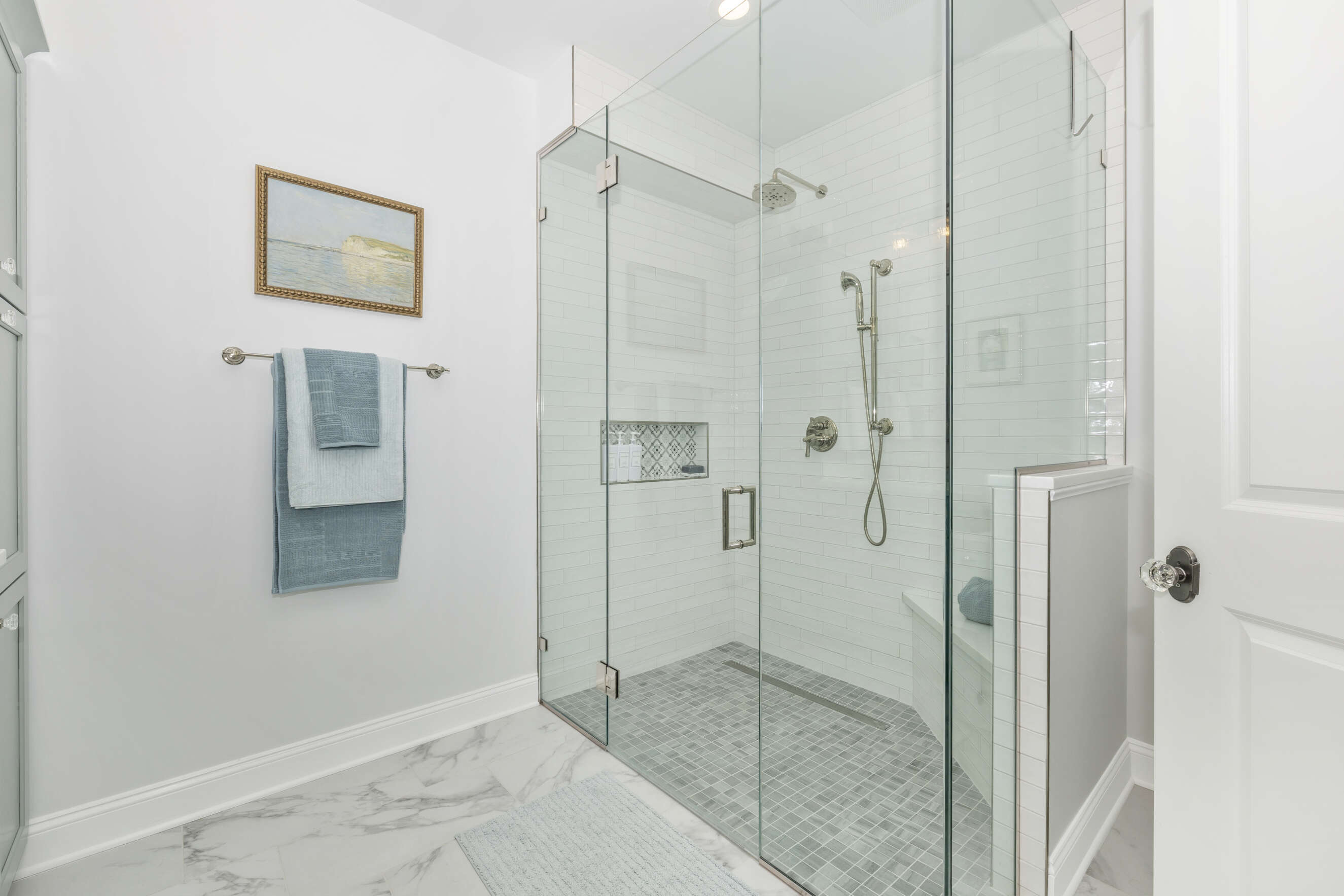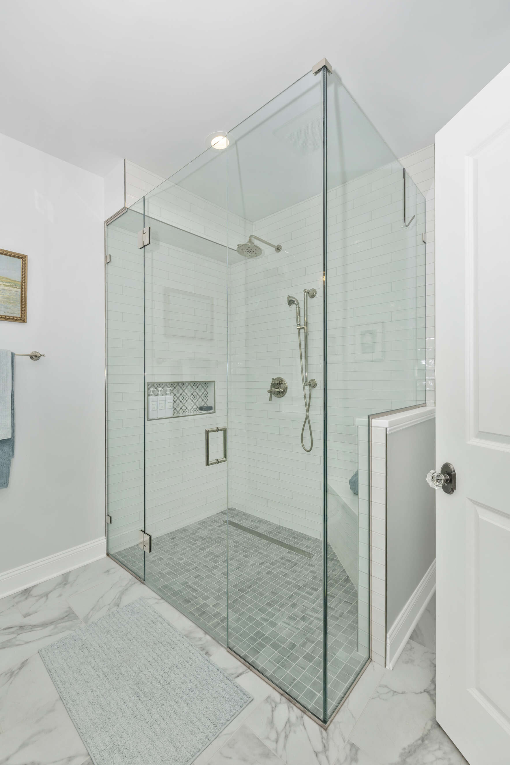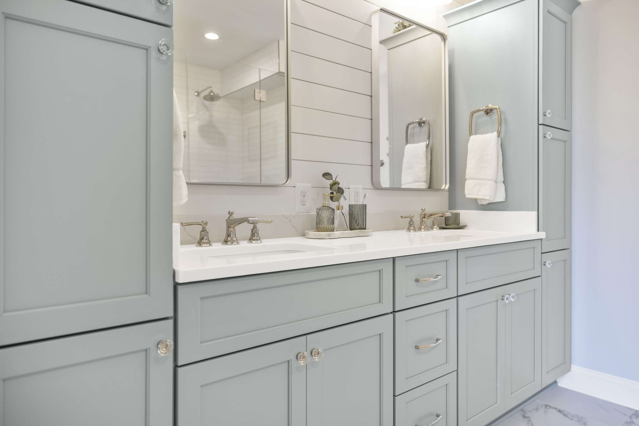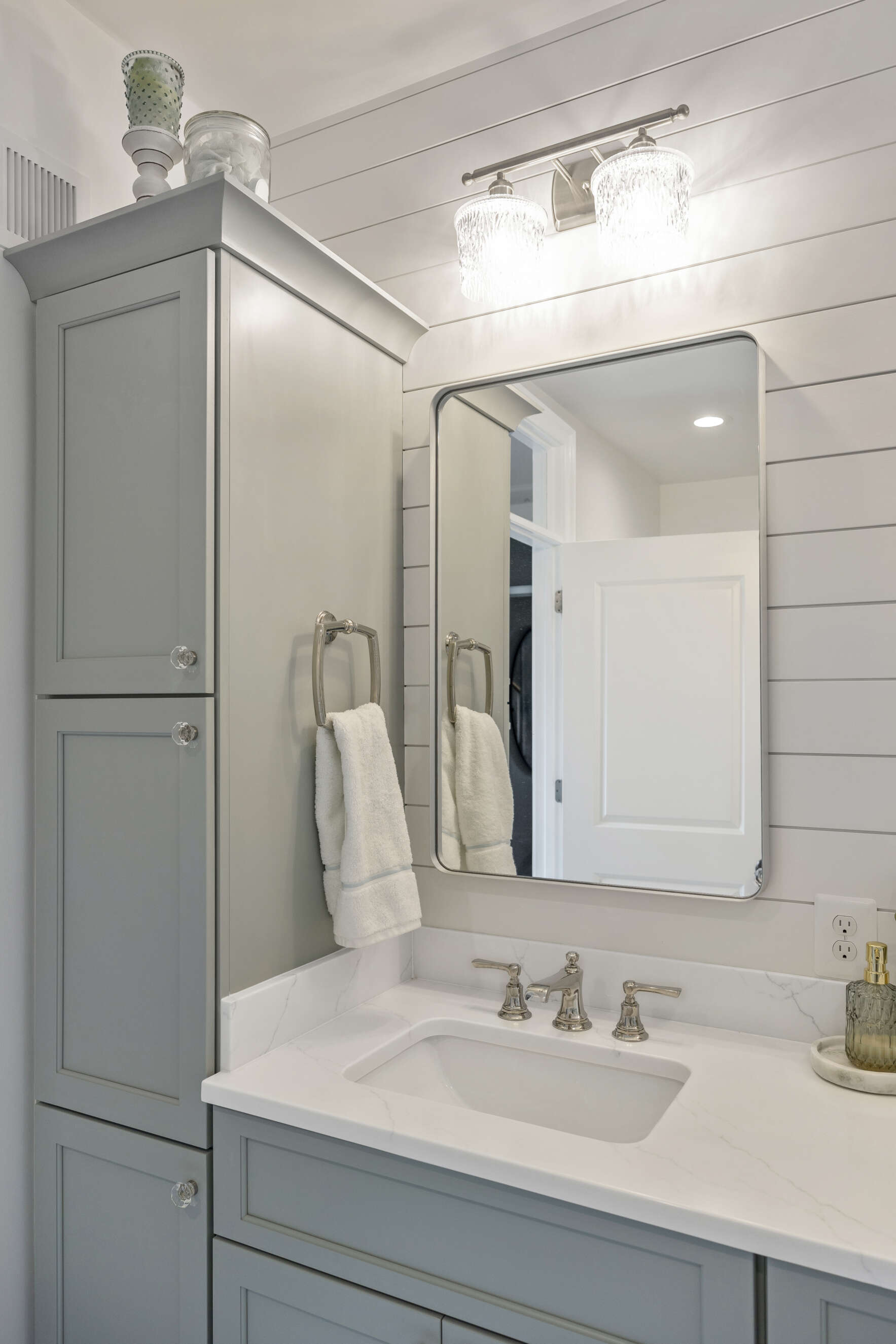 Absolutely stunning primary bath featuring a spacious shower, curbless entry, charming shiplap accents, and dual linen towers. The culmination of the owner's impeccable taste yields a rejuvenating and contemporary aesthetic! Beautiful! Thank you to our wonderful clients!!