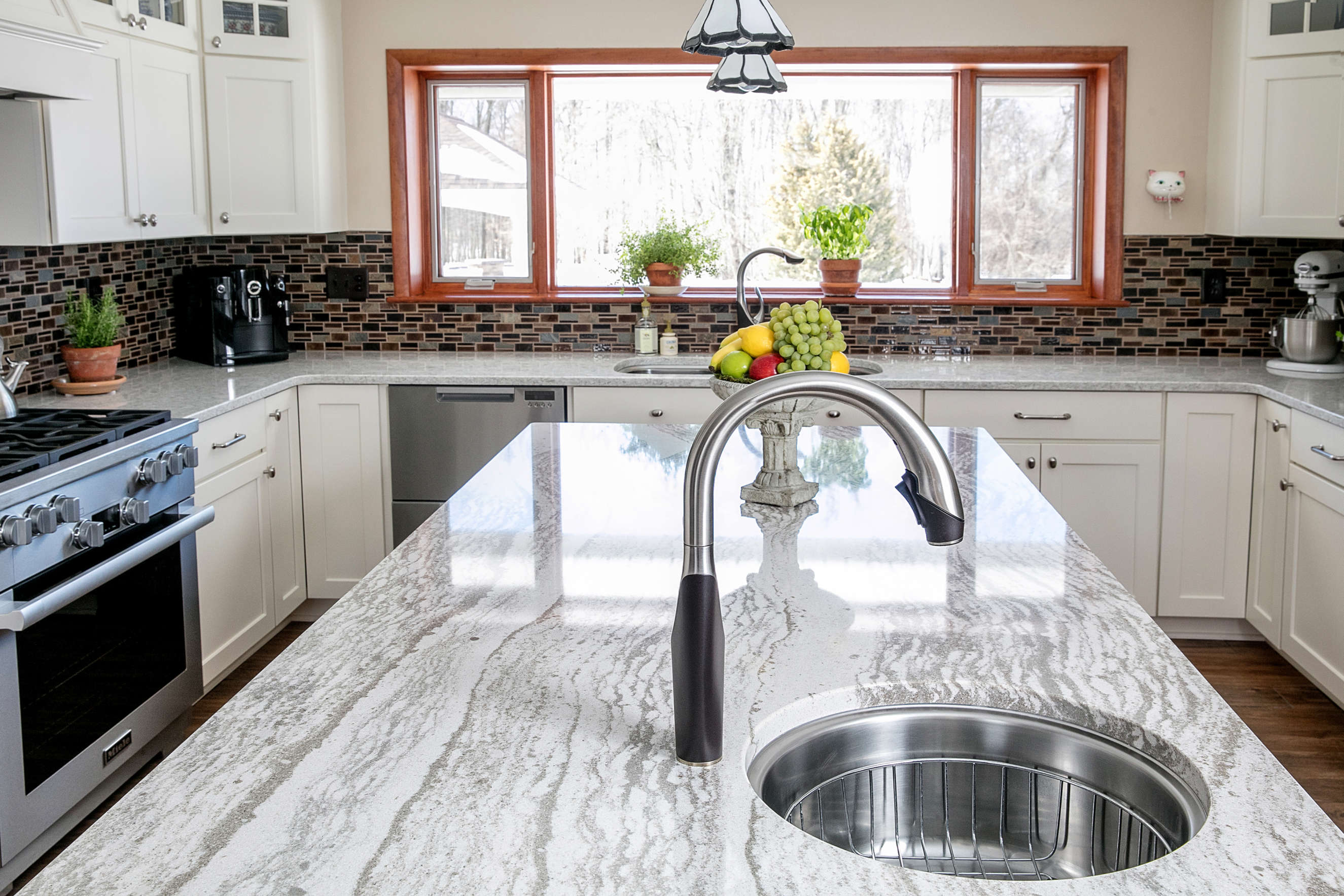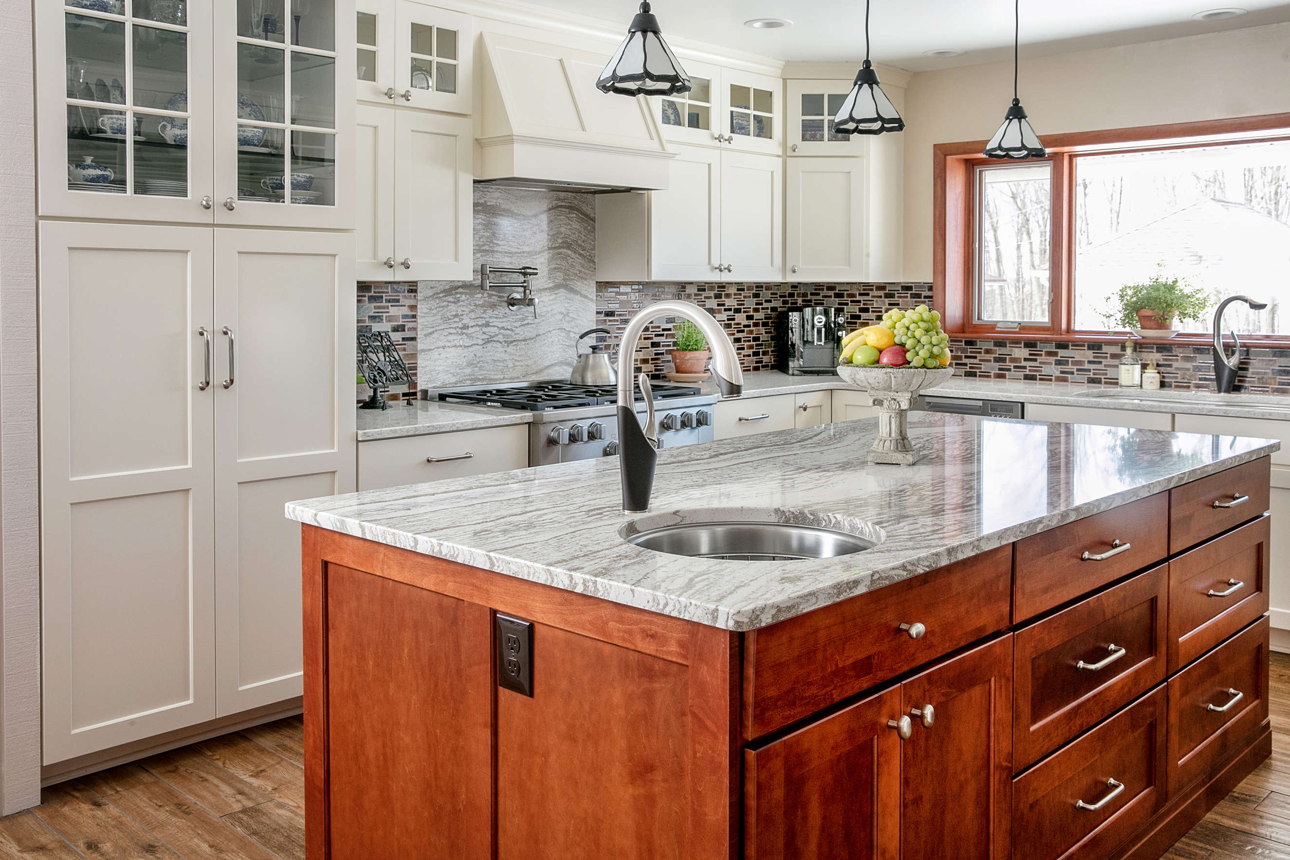 THE OPEN AIR COURTYARD IN THE CENTER OF THE HOME WAS RENEWED WITH ADIRONDACK STONE THAT MATCHED THE STONE OF THE INTERIOR HALLWAYS. INSIDE, LIGHT CASCADES FROM THE ATRIUM, ACCENTING ITS OPEN FLOORPLAN. STORE FRONT WINDOWS, RECESSED LIGHTING, AND STONE ACCENTS IN ALL ROOMS CREATE THE UNIQUE LOOK. A LARGE DINING ROOM AND READING ROOM OFFER HEIRLOOM QUALITY BUILT-IN CABINETRY. THE CENTRAL KITCHEN FEATURES ACCESSORY RICH DIVINITY CABINETRY WITH CONTRASTING RUMBERRY ISLAND, QUARTZ COUNTERTOPS AND STAINLESS APPLIANCE. TWO FIRST FLOOR POWDER ROOMS, MUD ROOM AND BACK ENTRYWAY OFFER EVEN MORE STONE ACCENTS.
